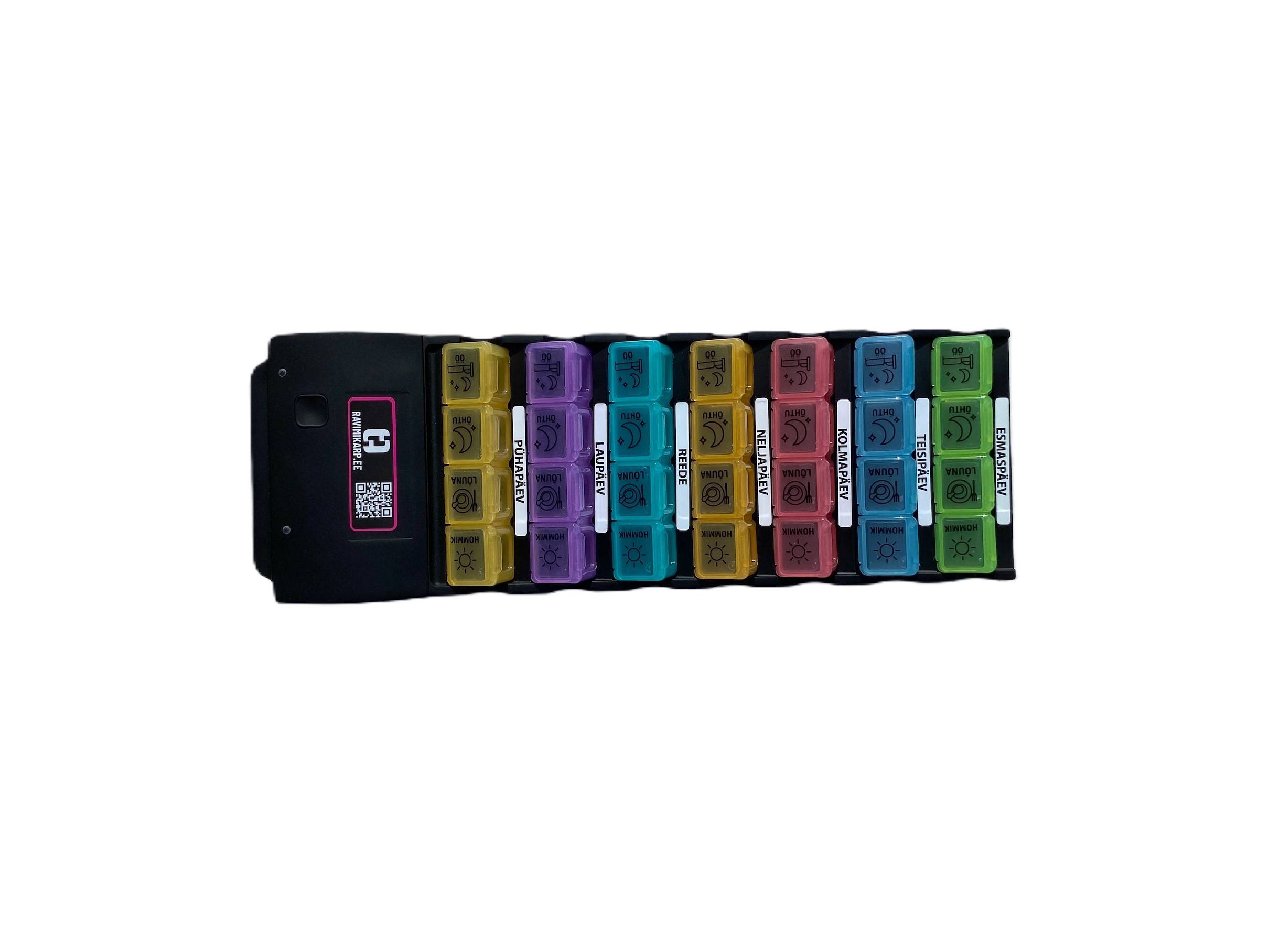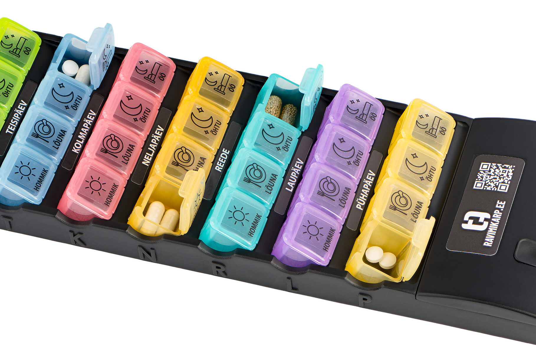 - Ravimid saab ette paigutada terveks nädalaks, vältides segadust ja unustamist.